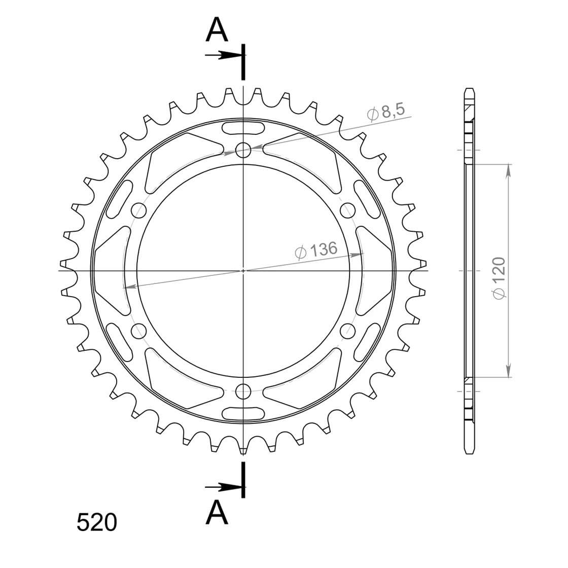 SS Supersprox RFE-846:39-BLK Bagkædehjul Bagtandhjul 39 Tands BAG 520 SORT YAMAHA 31K-25439-20-33 RD350 SRX600 SZR660