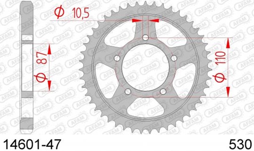 AFAM 14601-47 Bagkædehjul REAR SPROCKET STEEL 530, 47T SUZUKI 64511-20C10 GSF600 GSF650 Bandit GSX600F GSX750F GSXR1100