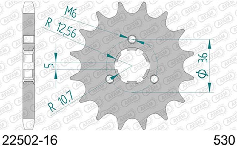 AFAM 22502-16 Fortandhjul front kædehjul 16 Tands FRONT SPROCKET STEEL 530, 16T SPROCKET,ENGINE Suzuki GT550 GT750 Yamaha XS360 XS400