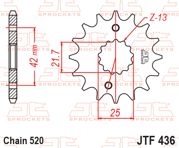 JT Fortandhjul 436/14T JTF436.14 14 TANDS APRILIA RS250 SUZUKI 27511-16702 RG250 RGV250 TV250
