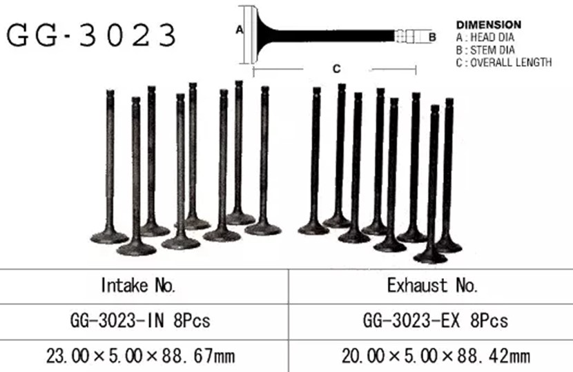Indsugningsventil GG-3023-IN VALVE,INTAKE (NON O.E. ALTERNATIVE) Suzuki 12911-19C00 GSX600F GSF600 Bandit