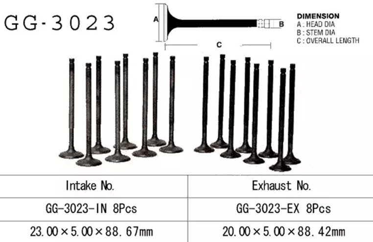 Udstødningsventil GG-3023-EX VALVE,EXHAUST (NON O.E. ALTERNATIVE) Suzuki 12912-19C00 GSX600F GSF600 BANDIT