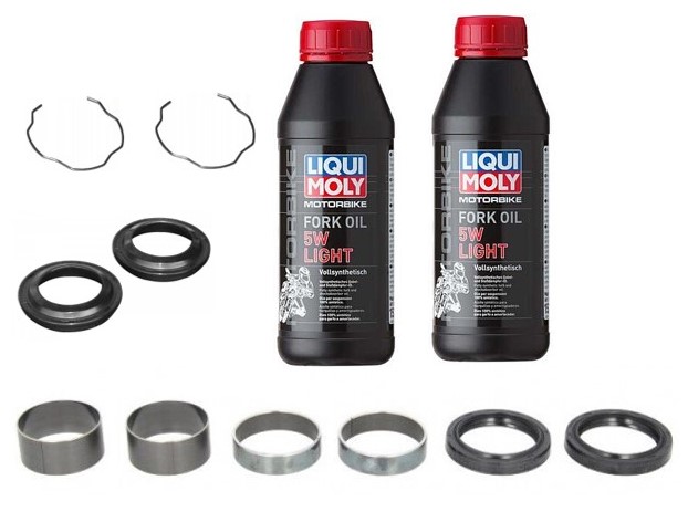 Forgaffel rep. kit olie, bøsninger, støvhætter, clips HONDA CR125-500 KAWASAKI KX125-500 Suzuki RM250 Yamaha YZ125-