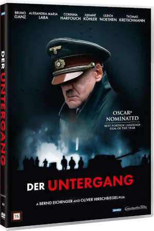 Vinder af Bavarian Film Awards og nomineret til Oscar for bedste udenlandske film, er DER UNTERGANG den omdiskuterede og kontroversielle film skildrer Adolf Hitlers sidste dage under det tredje riges fald. Filmen er instrueret af Oliver Hirschbiegel, og manuskriptet er skrevet af Bernd Eichinger (Rosens navn og Åndernes hus) på baggrund af den berømte historiker Joachim Fests bog Ragnarok. Hitler og det tredje riges undergang og Hitlers personlige sekretær Traudl Junges beretninger. DER UNTERGANG skildrer de sidste uger i Adolf Hitlers (Bruno Ganz) liv, oplevet fra stenografen Traudl Junges (Alexandra Maria Lara) synsvinkel. Tyskland er i opløsning og et nederlag til det tredje rige synes uundgåeligt. Hitler har sammen med sine nærmeste, deriblandt hans kone Eva Braun (Juliane Khler) og familien Goebbles (Ulrich Matthes og Corinna Harfouch), forskanset sig i Førerbunkeren i det centrale Berlin, hvor de afventer deres skæbne. De allierede nærmer sig hastigt Berlins porte, og Hitlers skiftende sindstilstande bliver værre og værre i takt med krigens udvikling. Der tegner sig hurtigt et billede af en desillusioneret Hitler med en ekstrem angst for konspirationer og et voldsomt had mod jøder, men der vises også en hidtil ukendt Hitler med mere humane sider. Instruktør Oliver Hirschbiegel Skuespillere: Bruno Ganz Alexandra Maria Lara Corinna Harfouch Ulrich Matthes Juliane Khler Heino Ferch Christian Berkel Matthias Habich