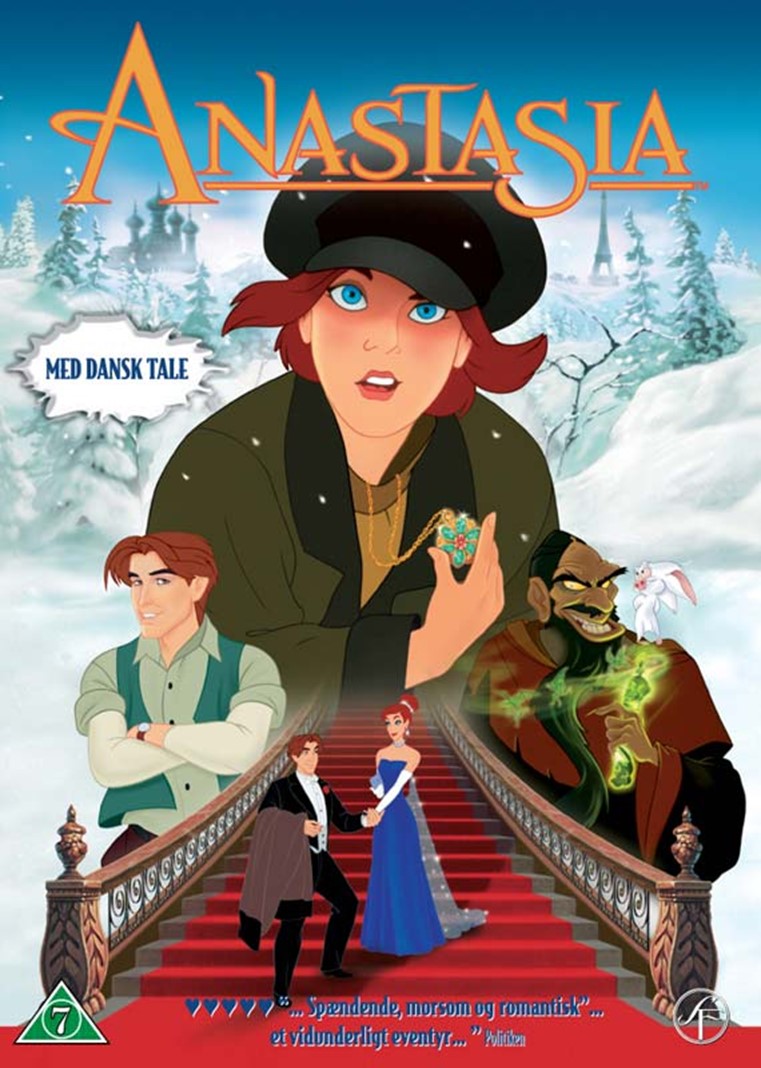 Alt ånder fred og lykke på Zarens palads - indtil den onde troldmand Rasputin kaster en forbandelse over kongefamilien. Oprøret bryder ud og den lille prinsesse Anastasia bliver forældreløs. Hun har ingen erindring om hvem hun eller hendes familie er. Hendes eneste spor er en nøgle til en spilledåse, som hun har fået af sin bedstemor. Det fører hende ud på et langt, spændende og farligt eventyr på vej til Paris sammen med den charmerende Dimitri og hundehvalpen Pooka. Stemmer: Meg Ryan John Cusack Kelsey Grammer Christopher Lloyd Hank Azaria Bernadette Peters Kirsten Dunst Instruktører: Don Bluth Gary Goldma