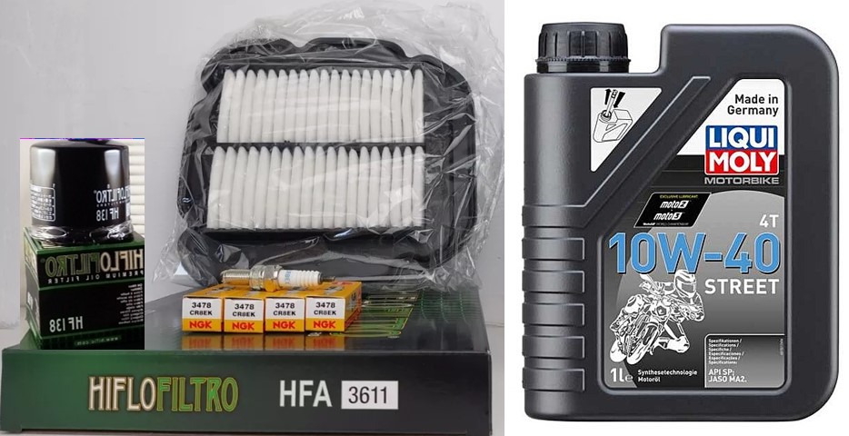 Servicekit SUZUKI DL 1000 02-07 KAWASAKI KLV1000 olie, oliefilter, luftfilter, tændrør, pakning bundprop
